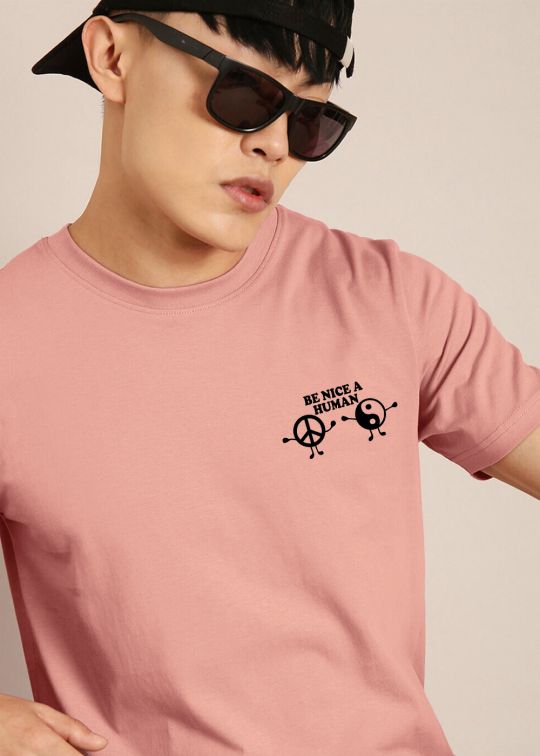 Be A Nice Human Pastel Pink Half Sleeve T-shirt For Men