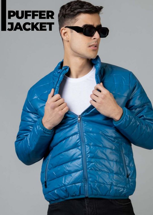 Blue Puffer Jacket For Men