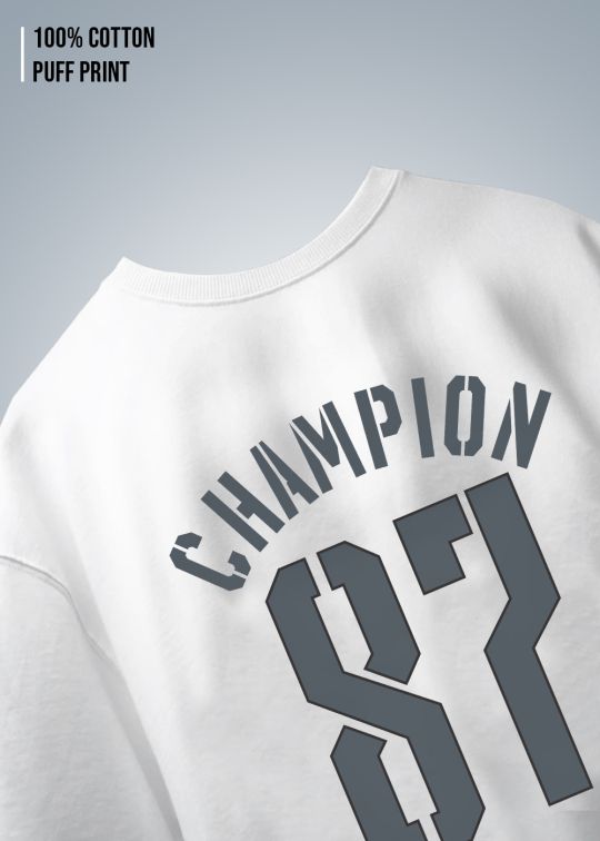 Manufacture, Care and FitChampion 87 Premium White Oversized T-shirt For Men