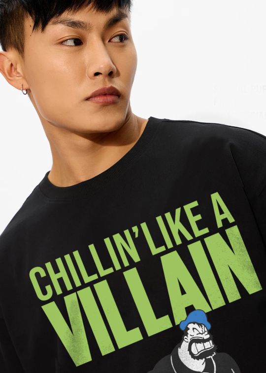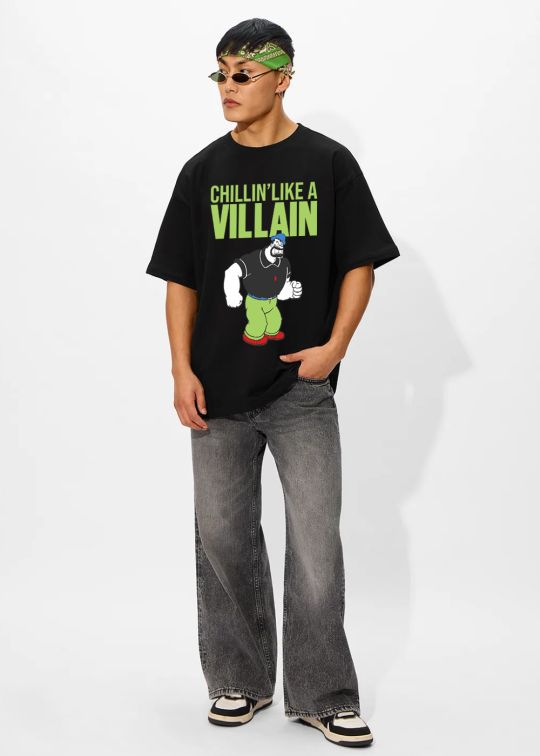 Chillin Like A Villain Black Oversized T-Shirt For Men